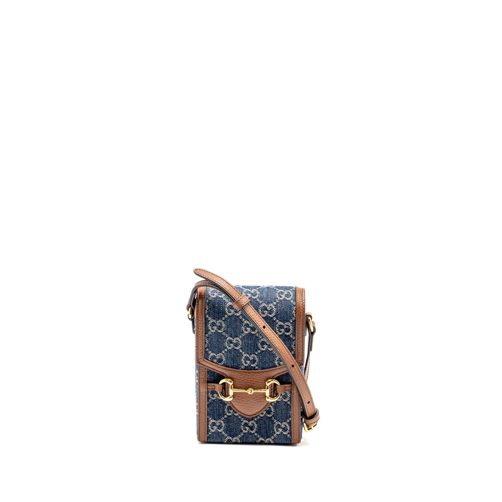 GUCCI HORSEBIT 1955 MINI BAG DENIM/CALFSKIN BLUE/BROWN GHW