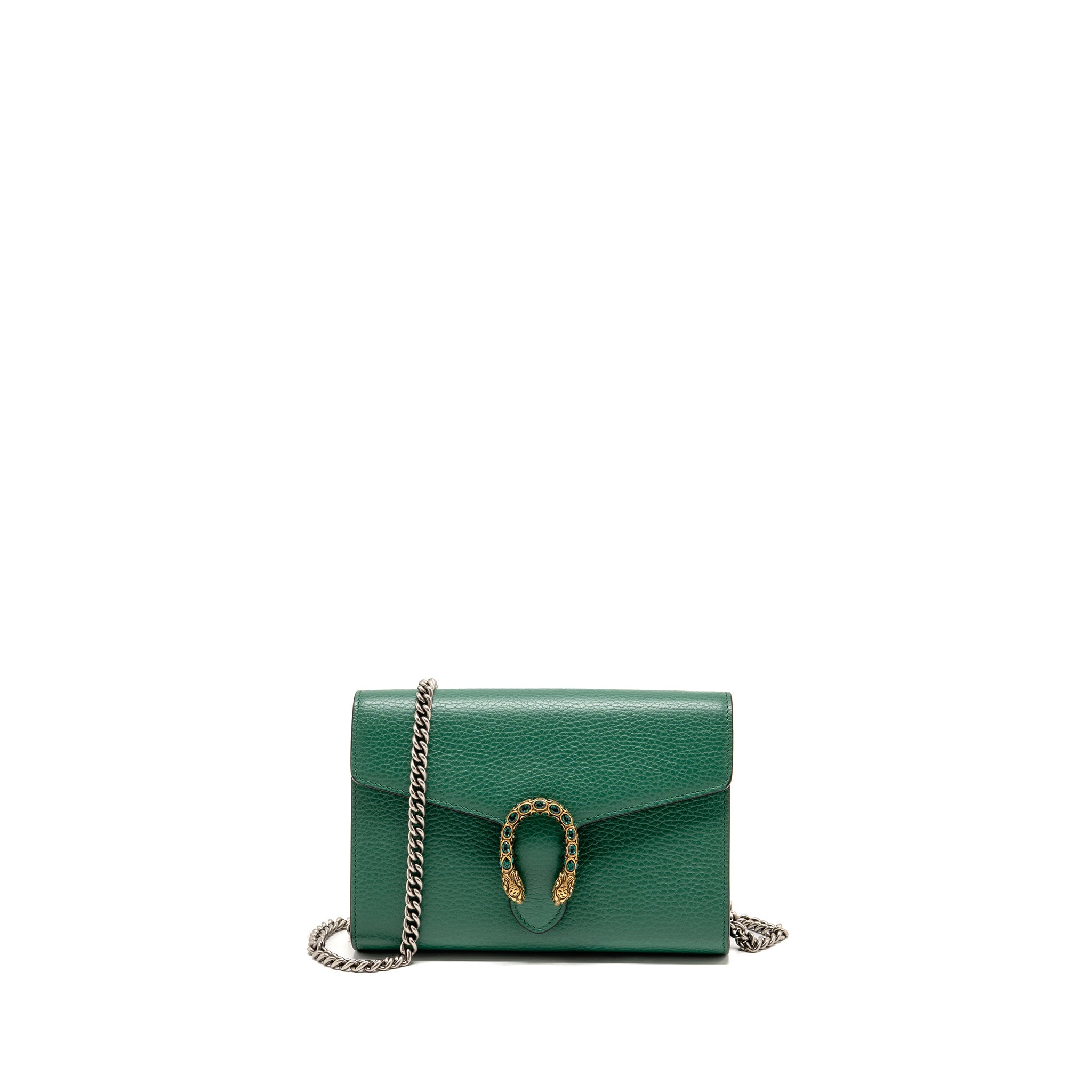 GUCCI MINI DIONYSUS WALLET ON CHAIN CALFSKIN GREEN MULTICOLOUR HARDWARE