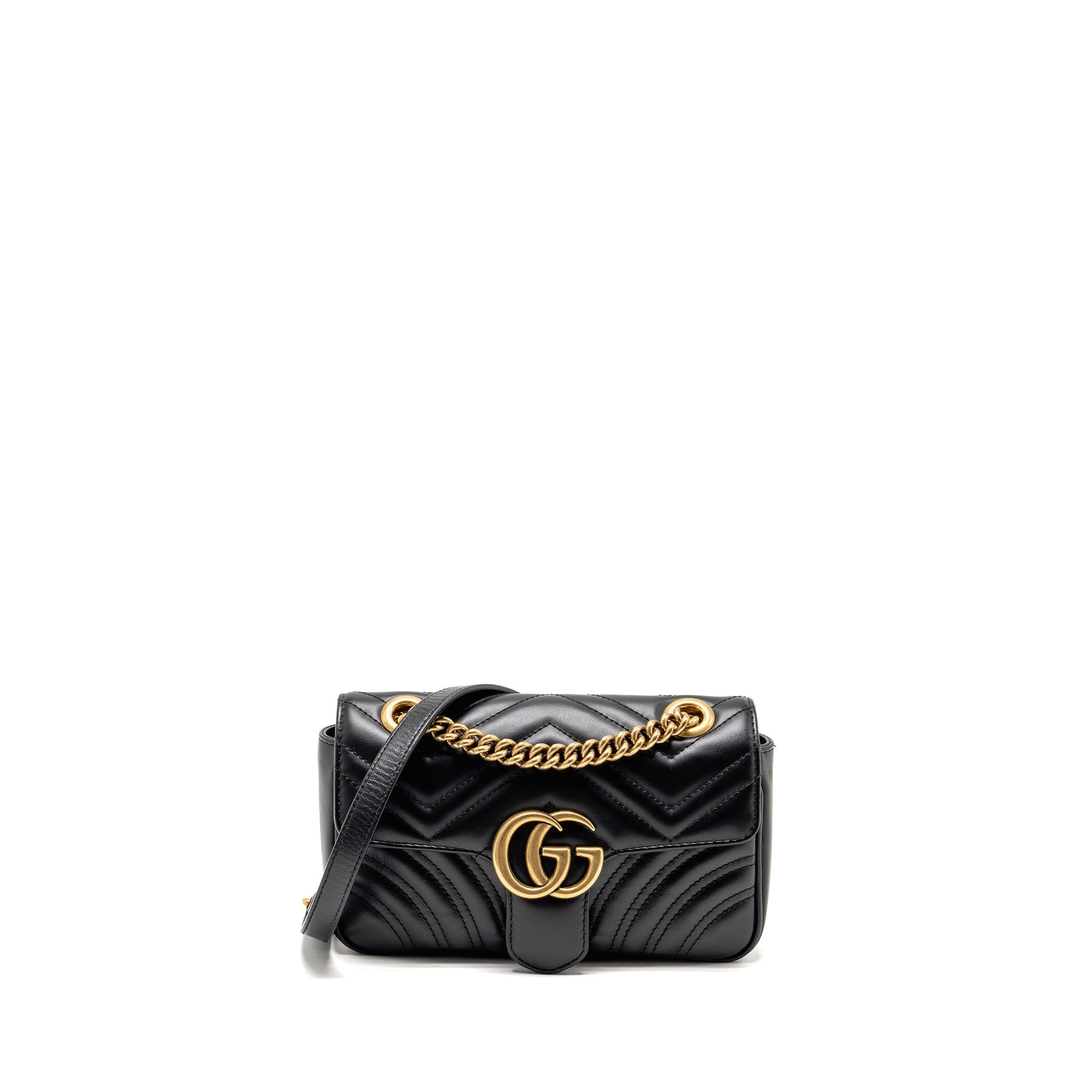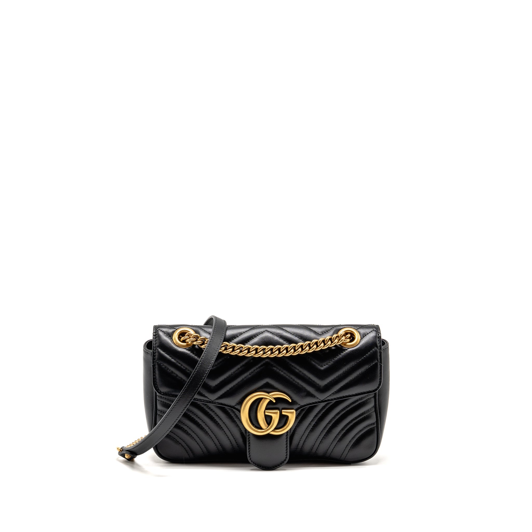 GUCCI SMALL GG MARMONT SHOULDER BAG CALFSKIN BLACK GHW