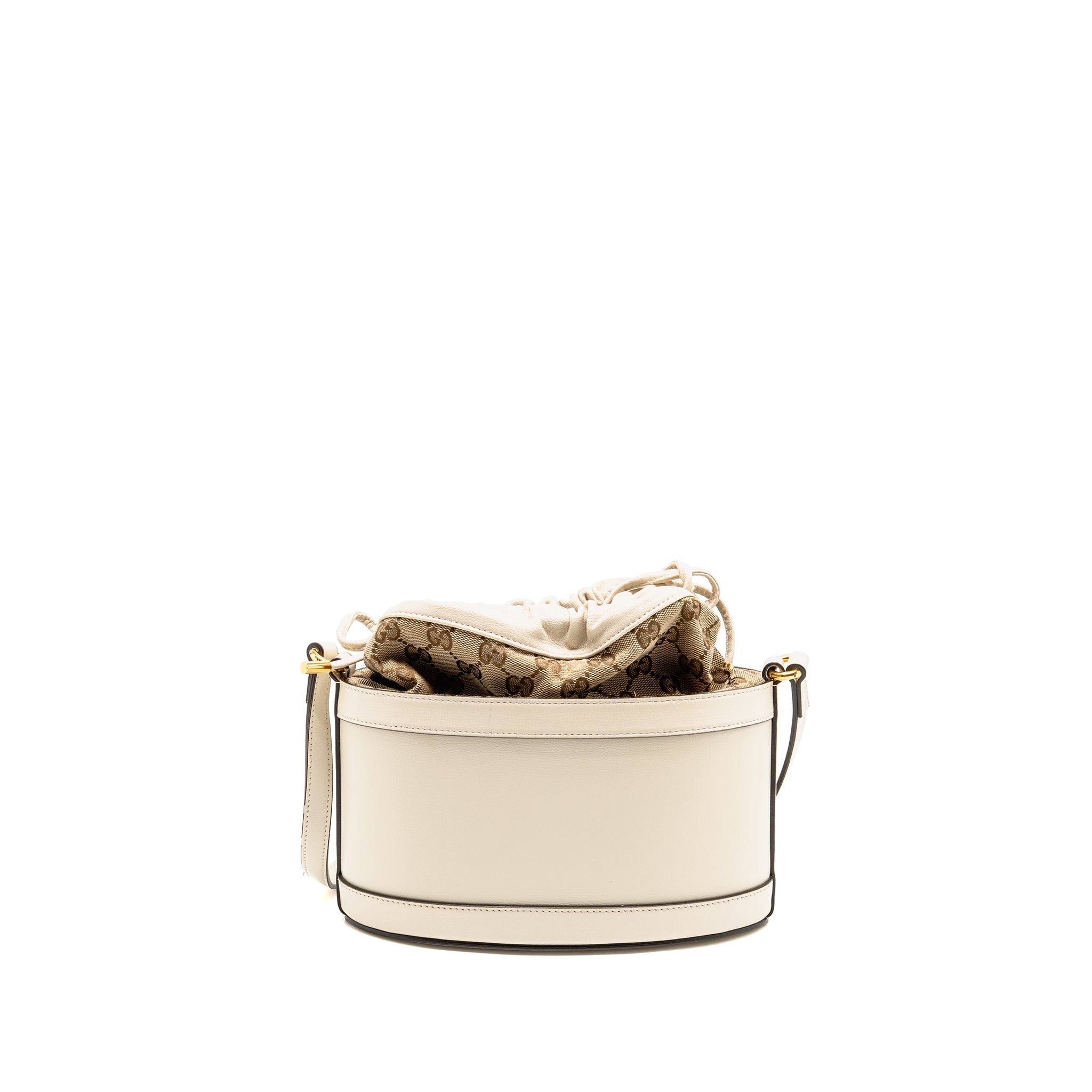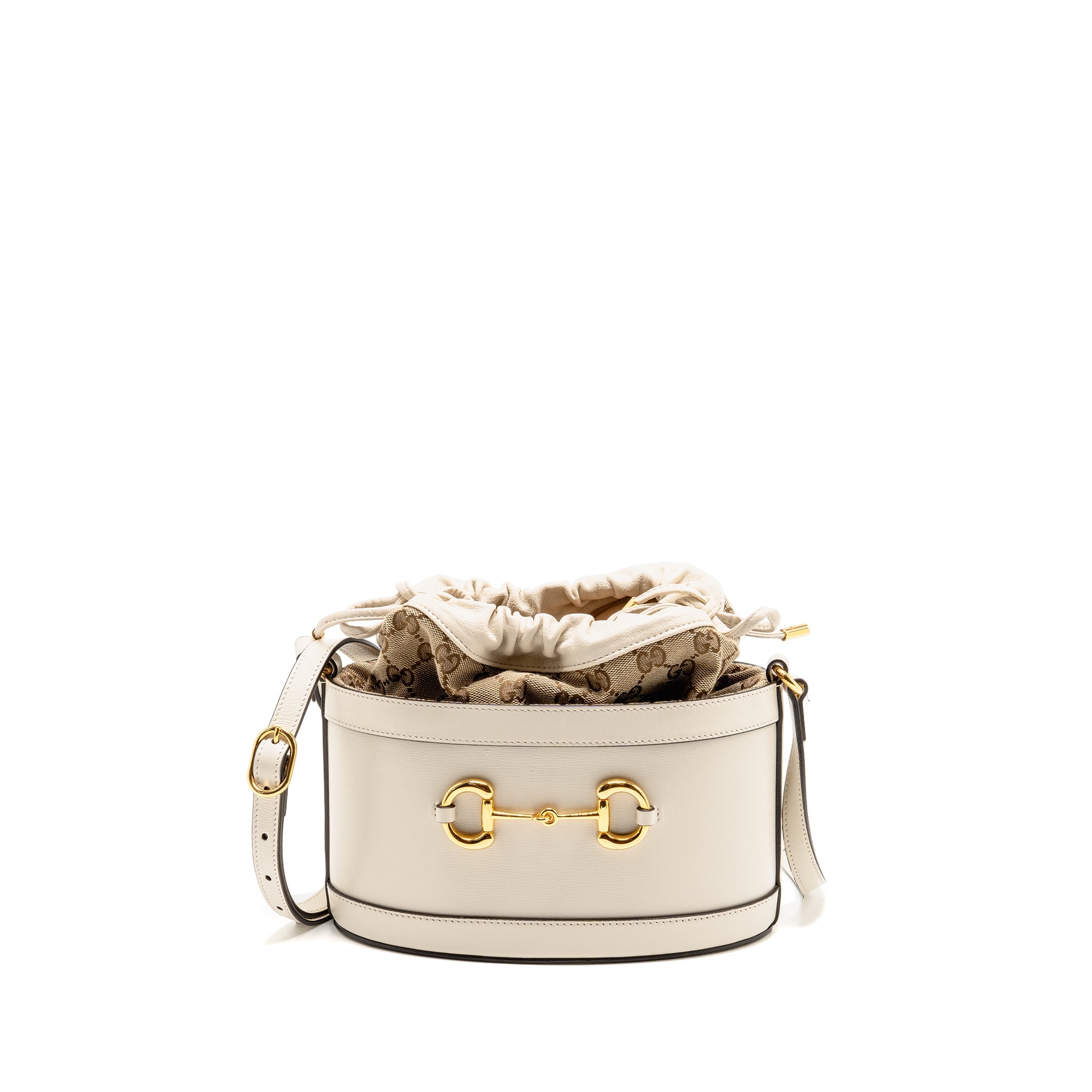 GUCCI HORSEBIT 1955 BUCKET BAG CALFSKIN/CANVAS BEIGE/WHITE GHW