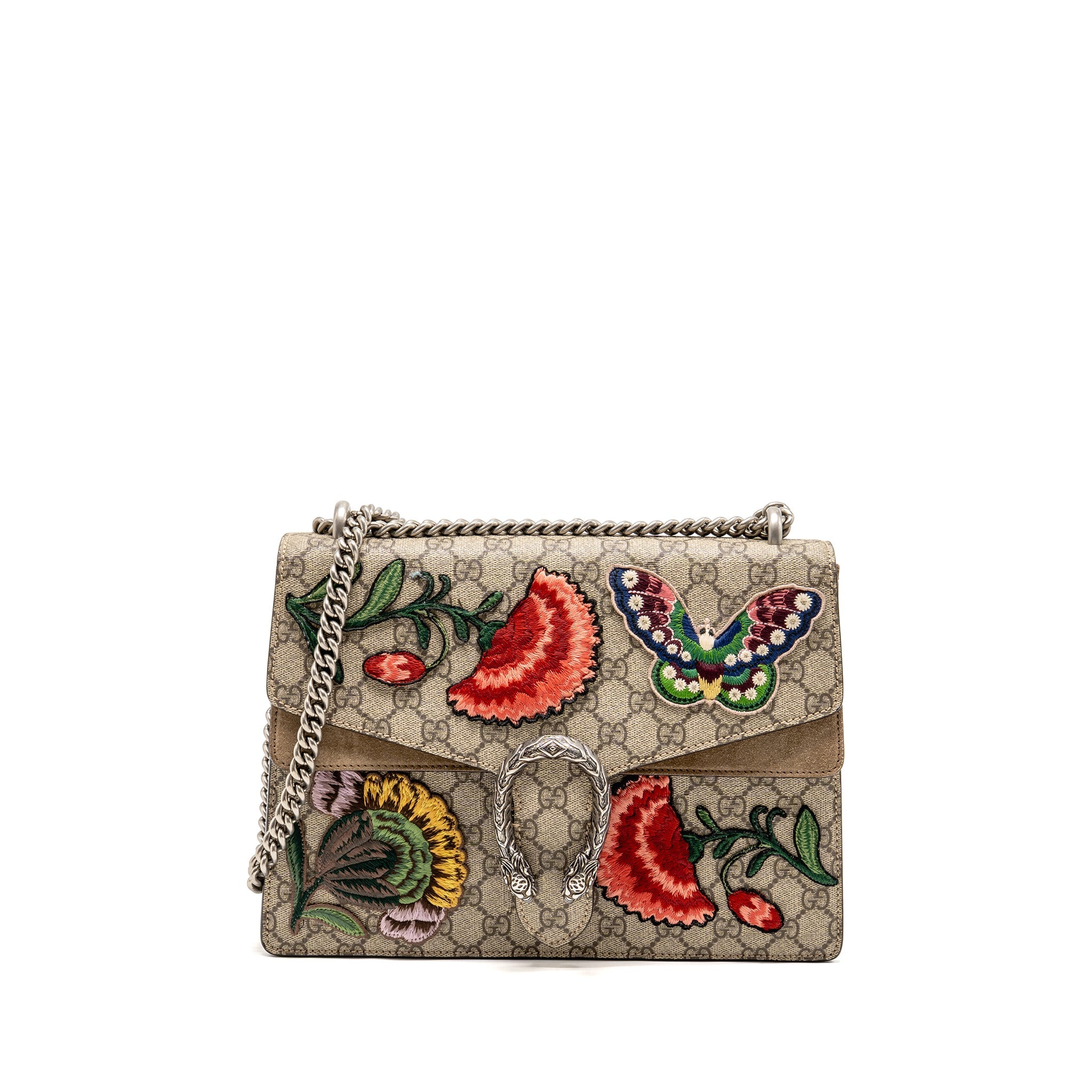 GUCCI SMALL ELEPHANT EMBROIDERED DIONYSUS SHOULDER BAG GG SUPREME CANVAS/LEATHER BEIGE/MULTICOLOUR SHW
