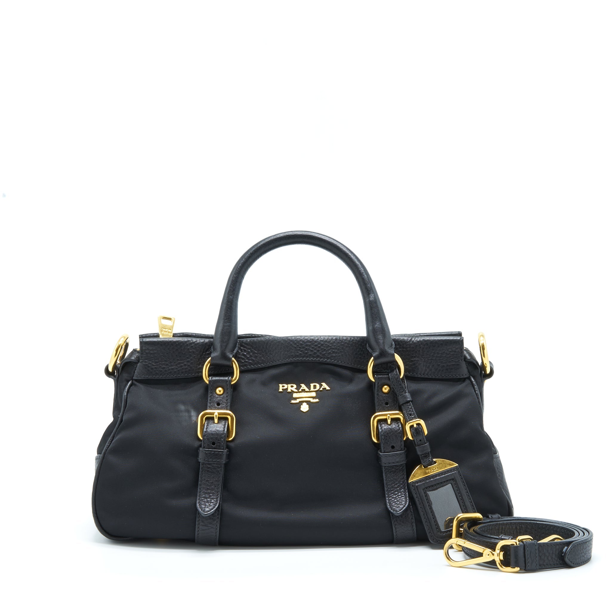 PRADA TESSUTO HANDLE BAG NYLON AND LEATHER BLACK GHW
