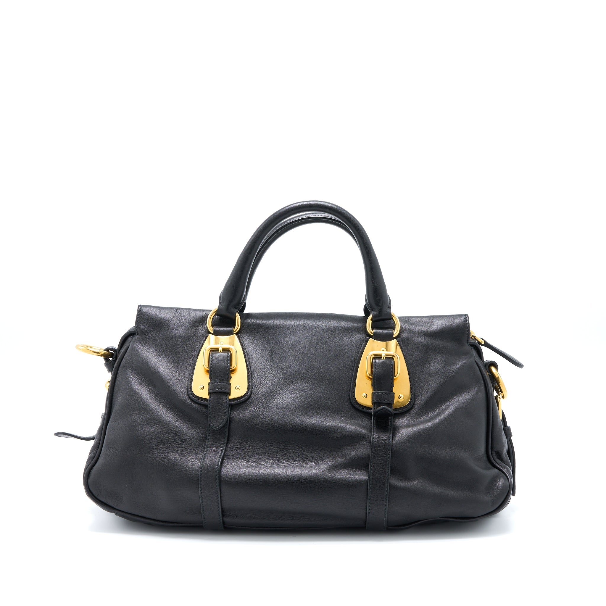 PRADA BONNIE MEDIUM LEATHER HANDBAG CALFSKIN BLACK GHW