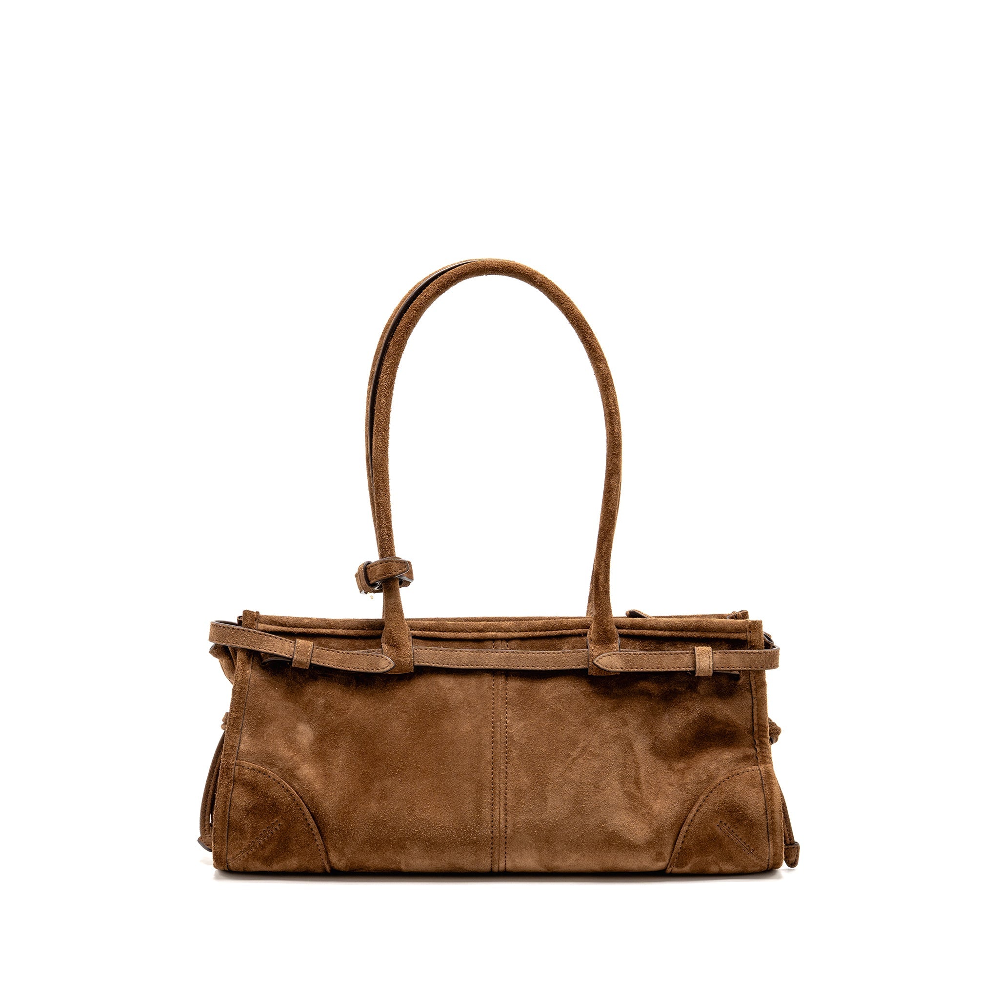 PRADA MEDIUM BONNIE HANDBAG SUEDE LEATHER BROWN GHW