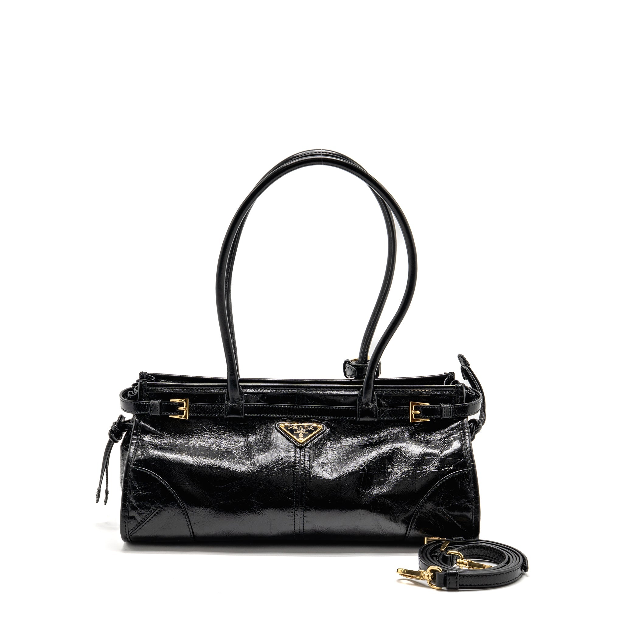 PRADA BAULETTO TOTE BAG SOFT CALFSKIN BLACK GHW