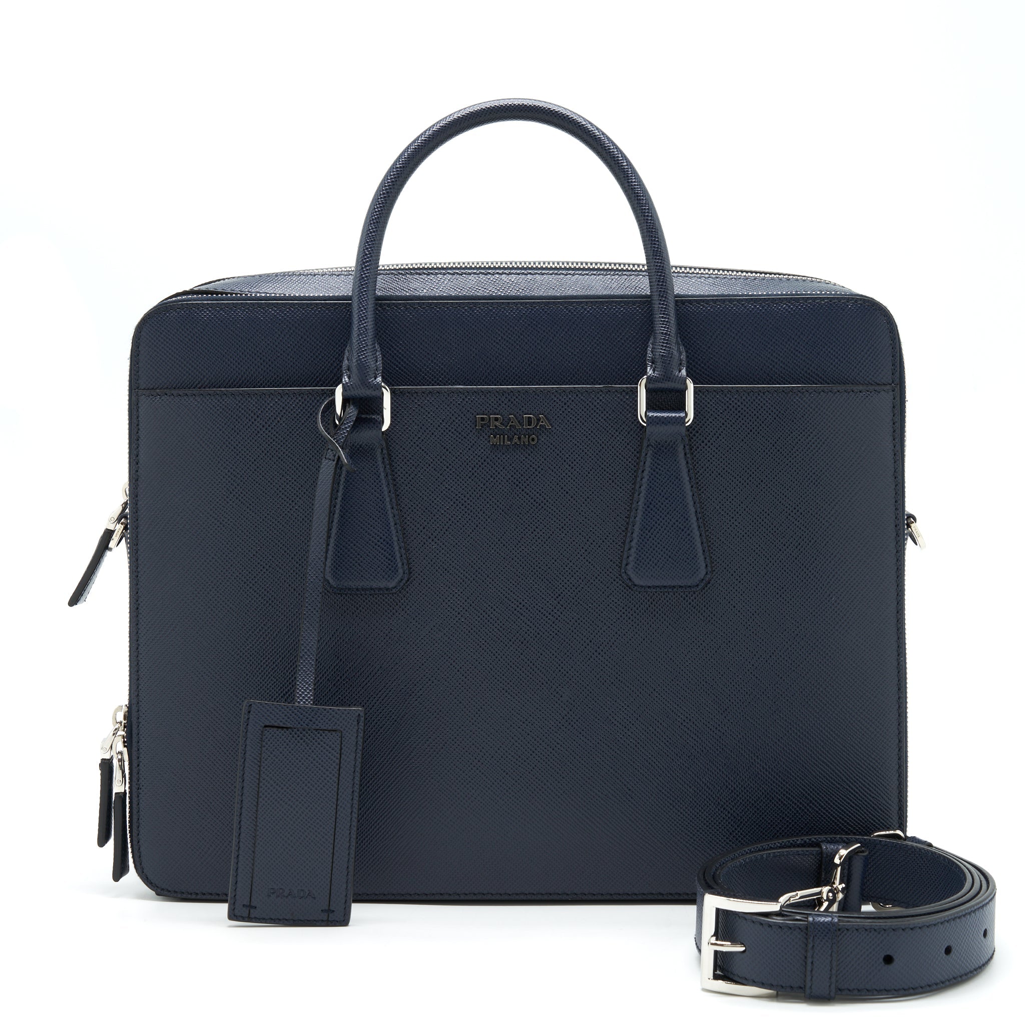PRADA SAFFIANO BRIEFCASE NAVY SHW