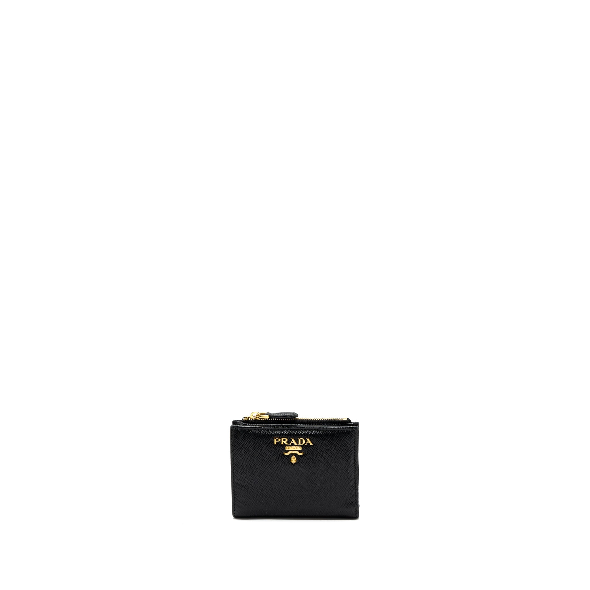 PRADA SMALL SAFFIANO LEATHER WALLET BLACK GHW
