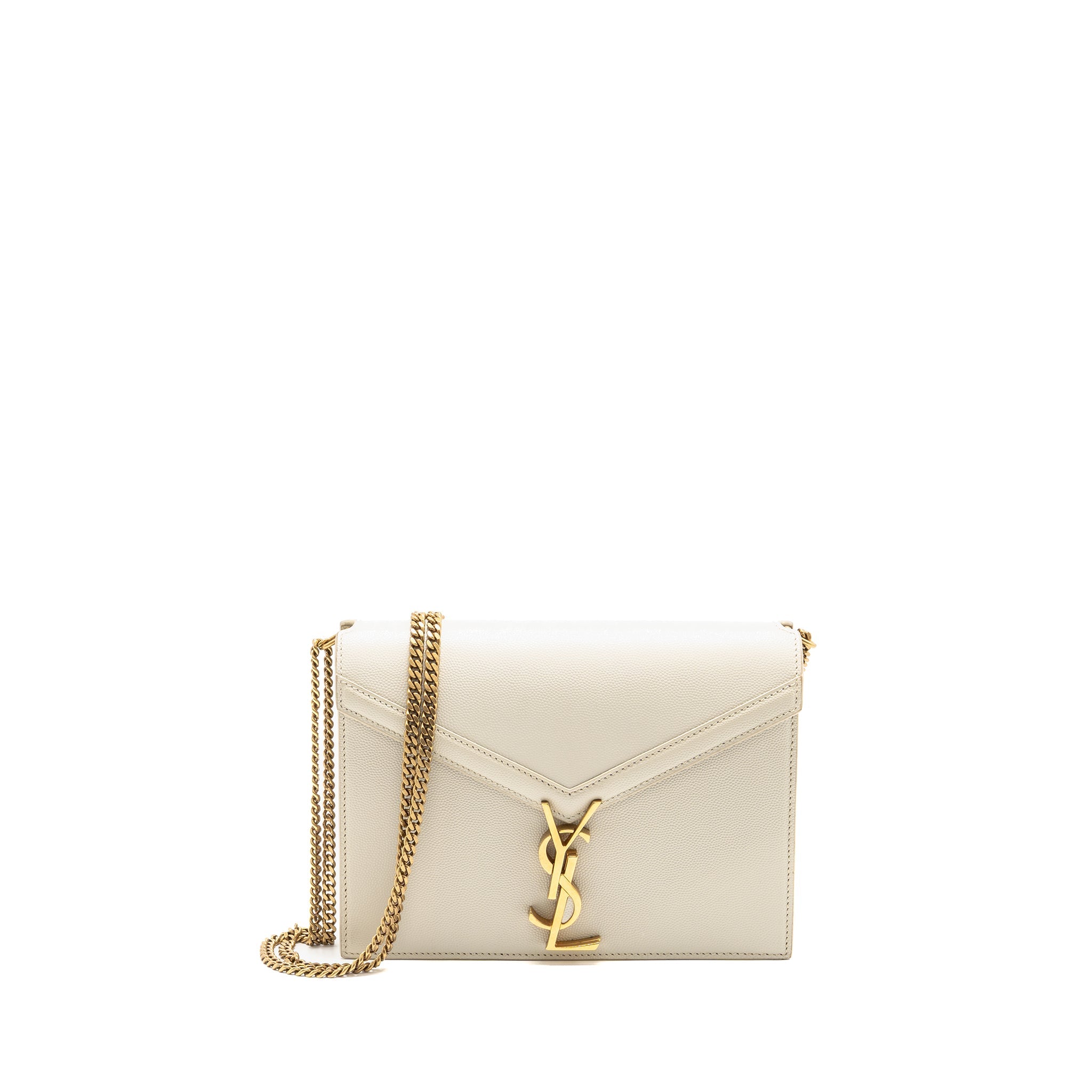 SAINT LAURENT ENVELOPE CHAIN WALLET GRAINED CALFSKIN CREAM SOFT GHW