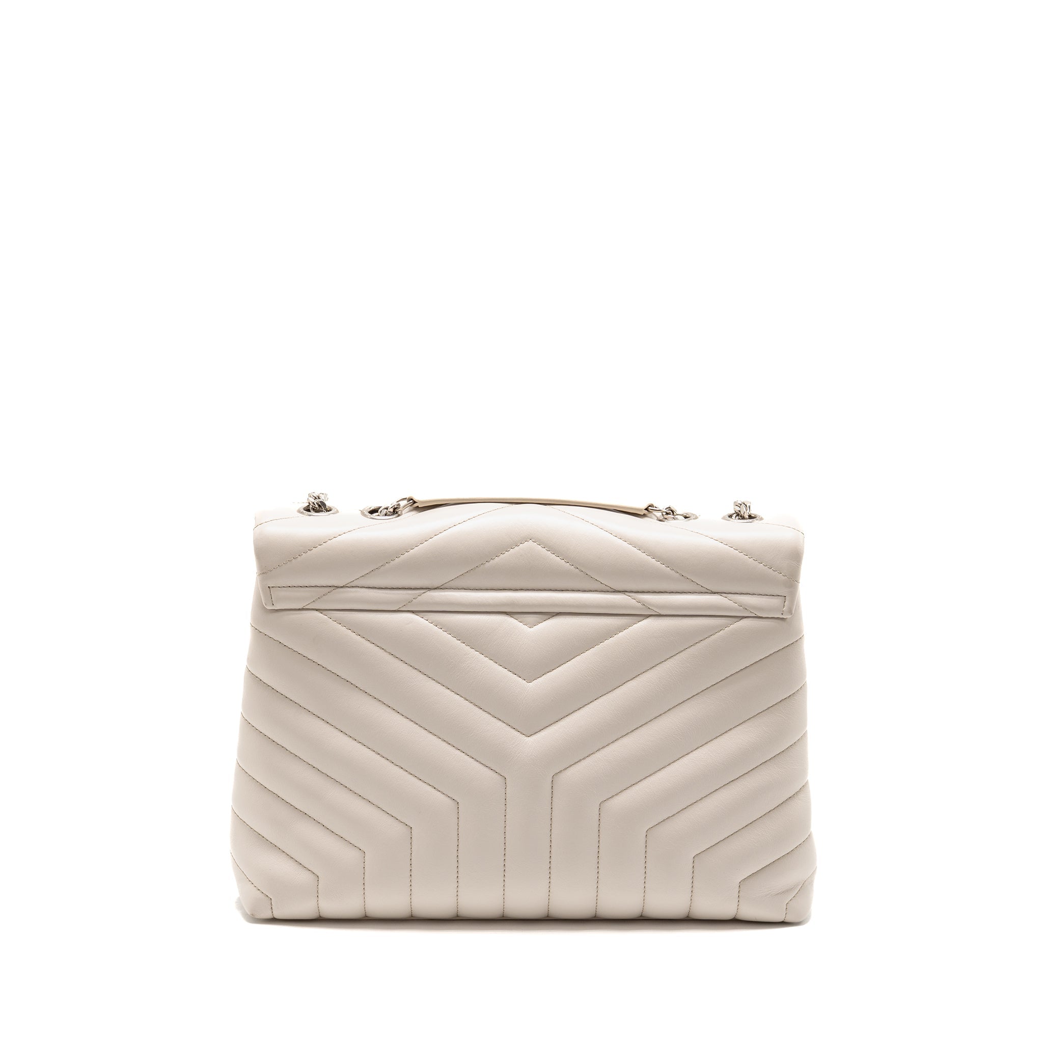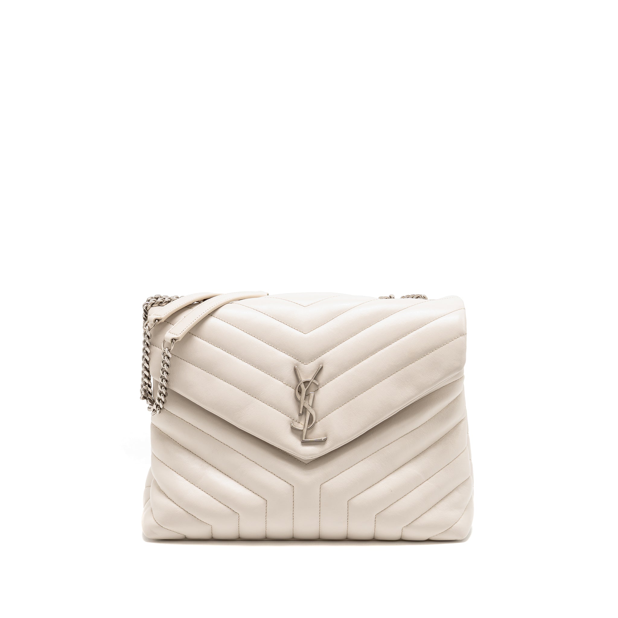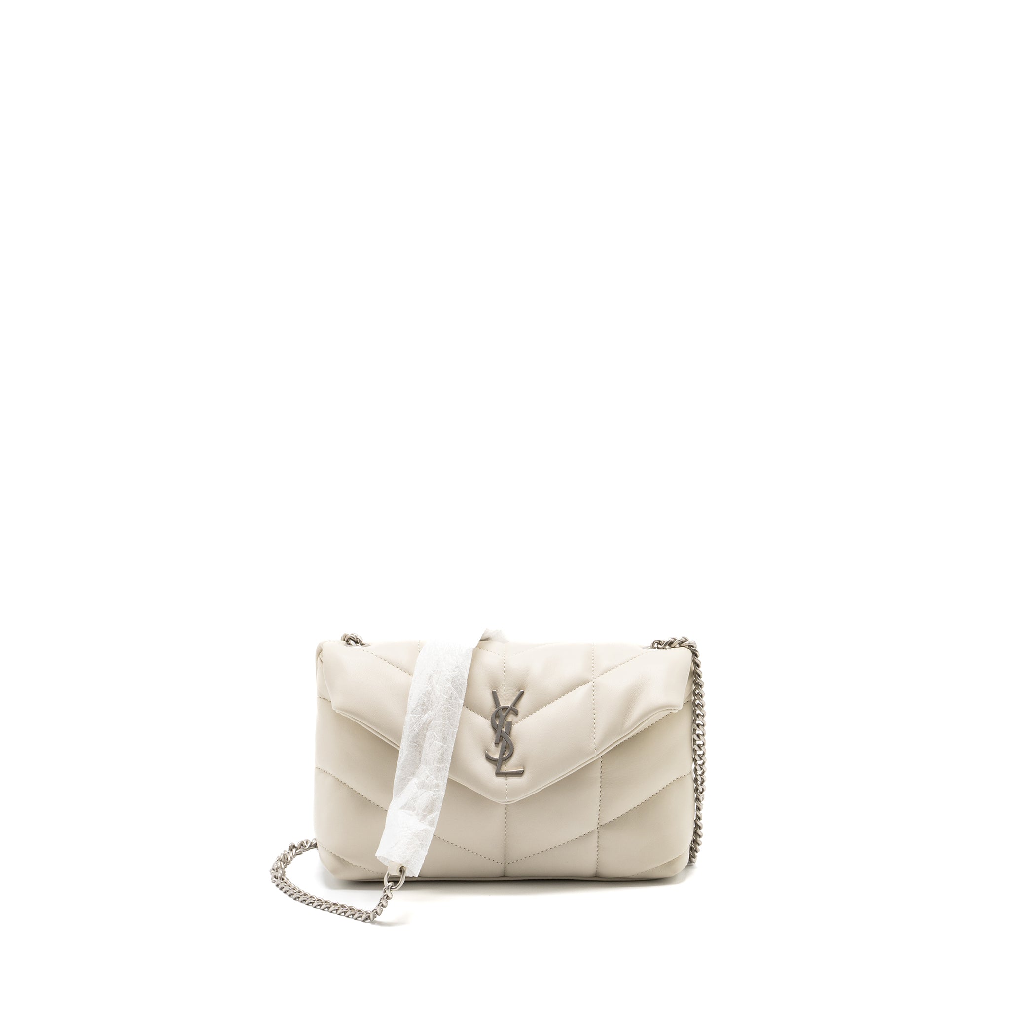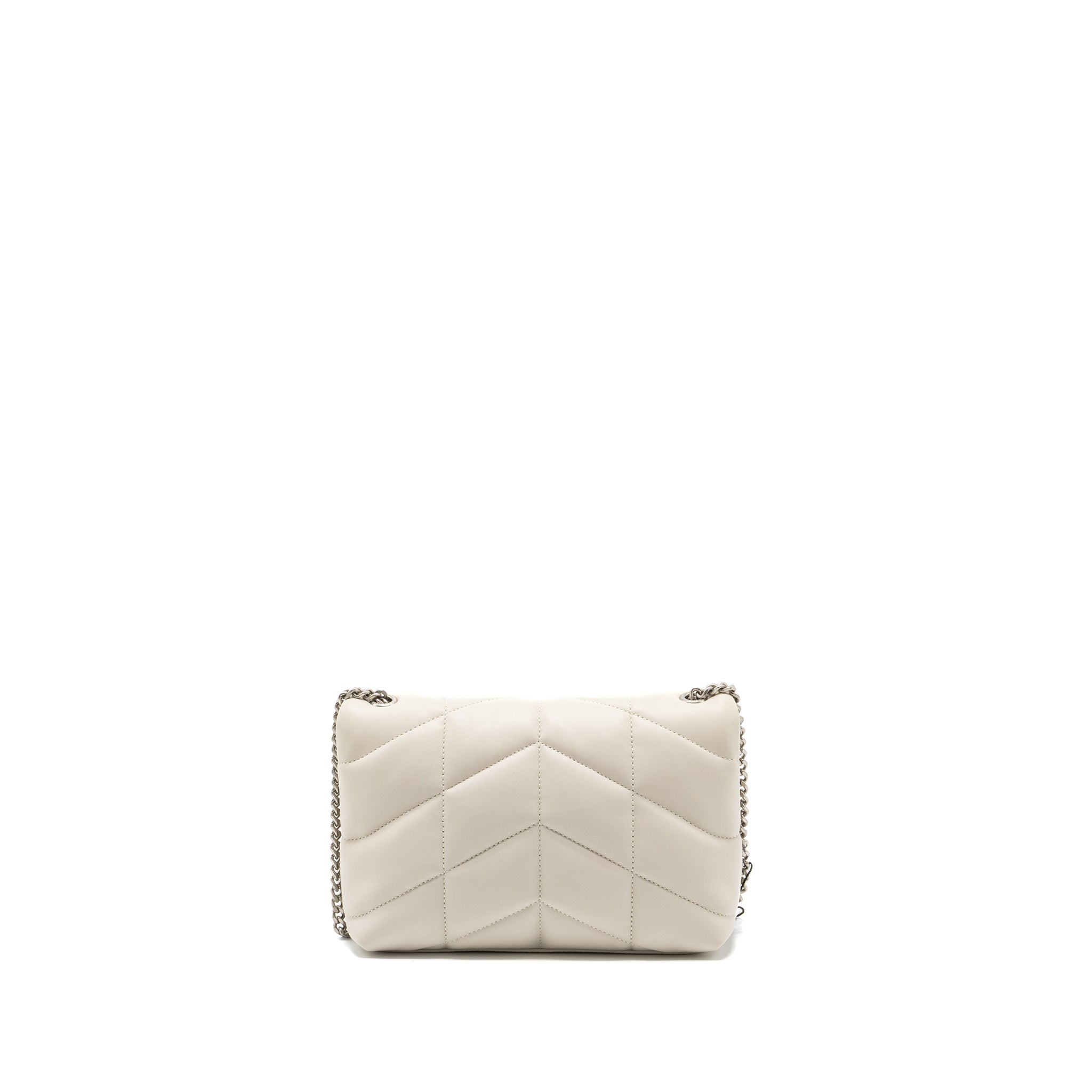SAINT LAURENT SMALL LOULOU PUFFER SHOULDER BAG LAMBSKIN BLANC VINTAGE RUTHENIUM HARDWARE