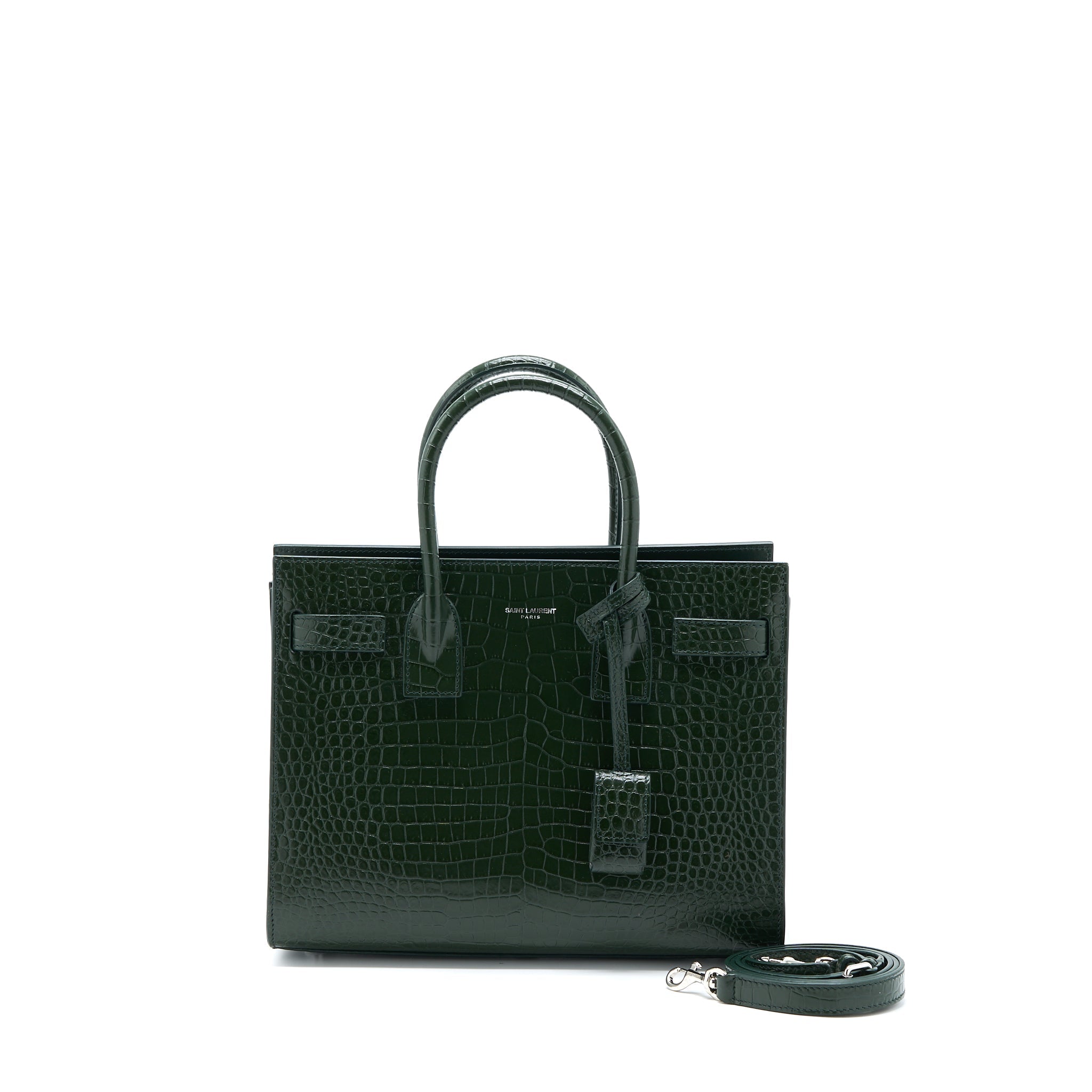 SAINT LAURENT BABY SAC DE JOUR CROC EMBOSSED DARK GREEN SHW