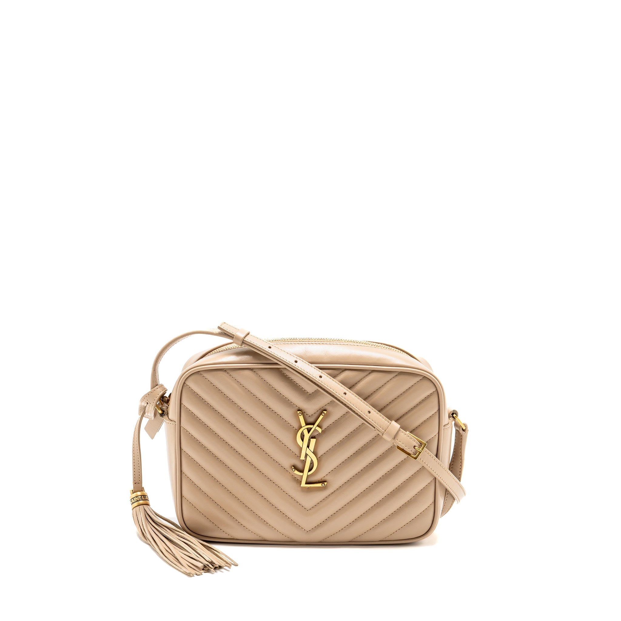 SAINT LAURENT/YSL LOU CAMERA BAG CALFSKIN BEIGE GHW