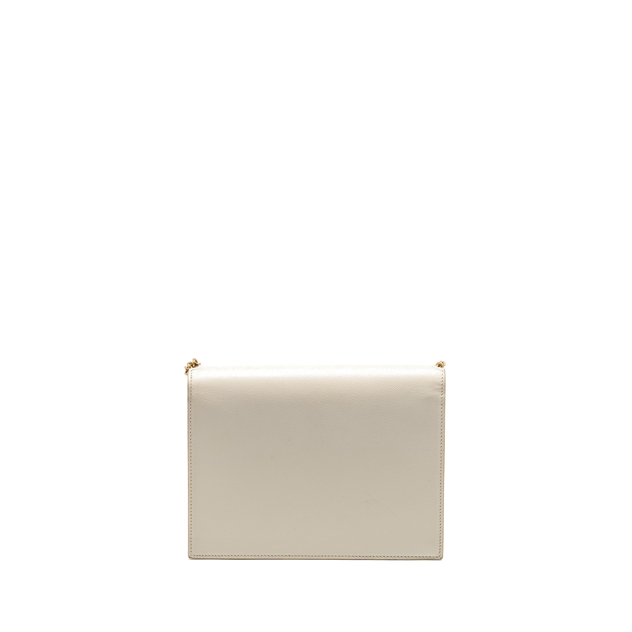 SAINT LAURENT/YSL CASSANDRA CHAIN WALLET GRAINED CALFSKIN CREAMY WHITE GHW