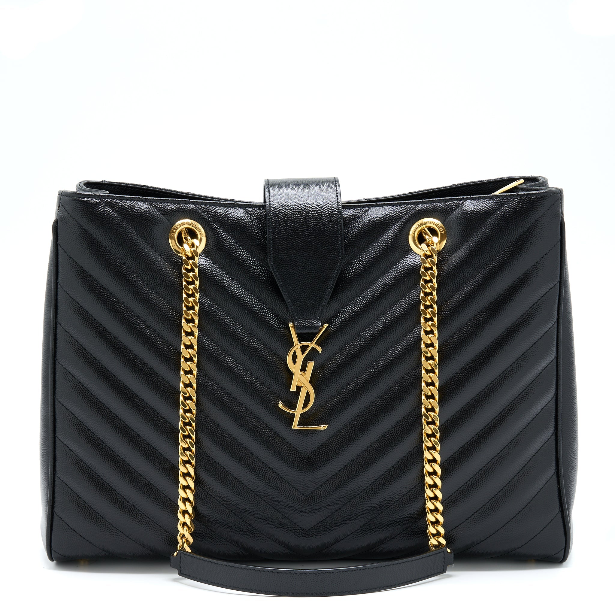 SAINT LAURENT/YSL CHEVRON TOTE BAG BLACK GHW