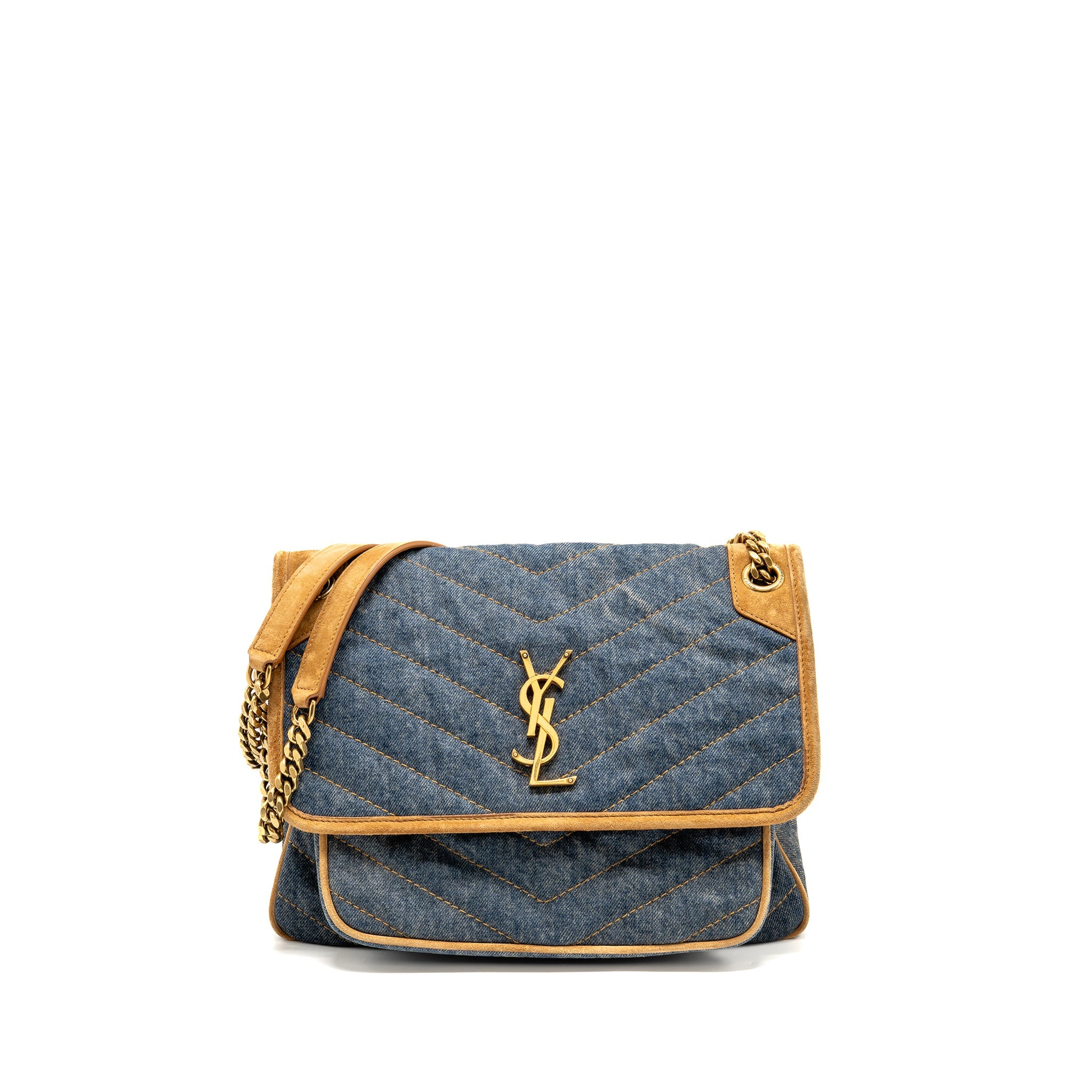 SAINT LAURENT/YSL NIKI SHOULDER BAG DENIM BLUE/ CINNAMON GHW