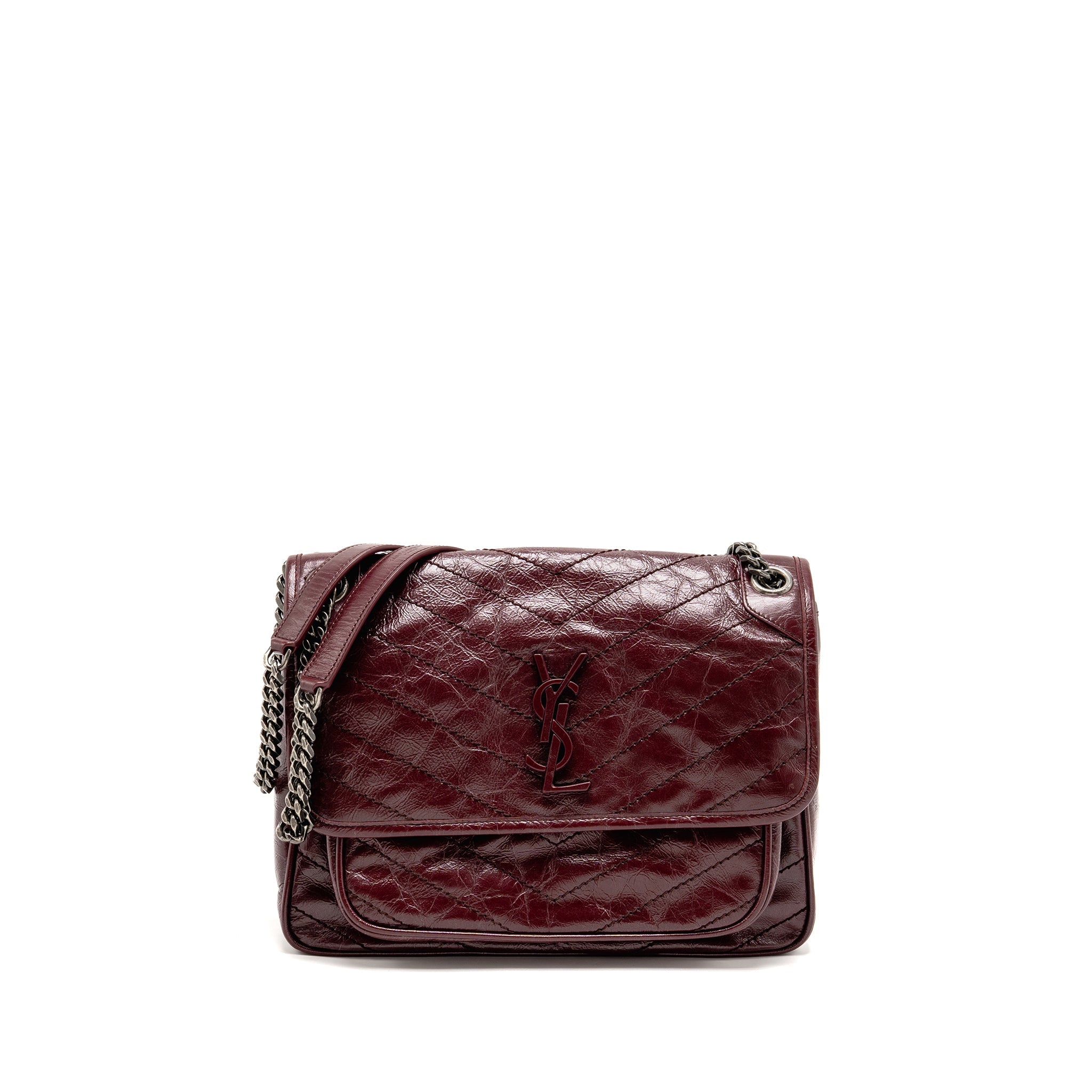 SAINT LAURENT YSL MEDIUM NIKI SHOULDER BAG CALFSKIN BURGUNDY RUTHENIUM SHW